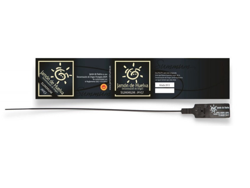 Paleta de Bellota 100% ibérica D.O. Summun Jabugo Lazo avalada por su sello Denominación de Origen Jamón de Jabugo. Paletilla elaborada en la Sierra de Jabugo en condiciones microclimáticas únicas procedentes de cerdos de raza ibérica criados en libertad dentro de la dehesa y engordados con bellotas y pastos. Jamón de Huelva es una Denominación de Origen Protegida y reconocida por la Unión Europea que certifica el origen y la calidad de los jamones y paletas. De 20 a 24 meses de curación Aproximadamente.